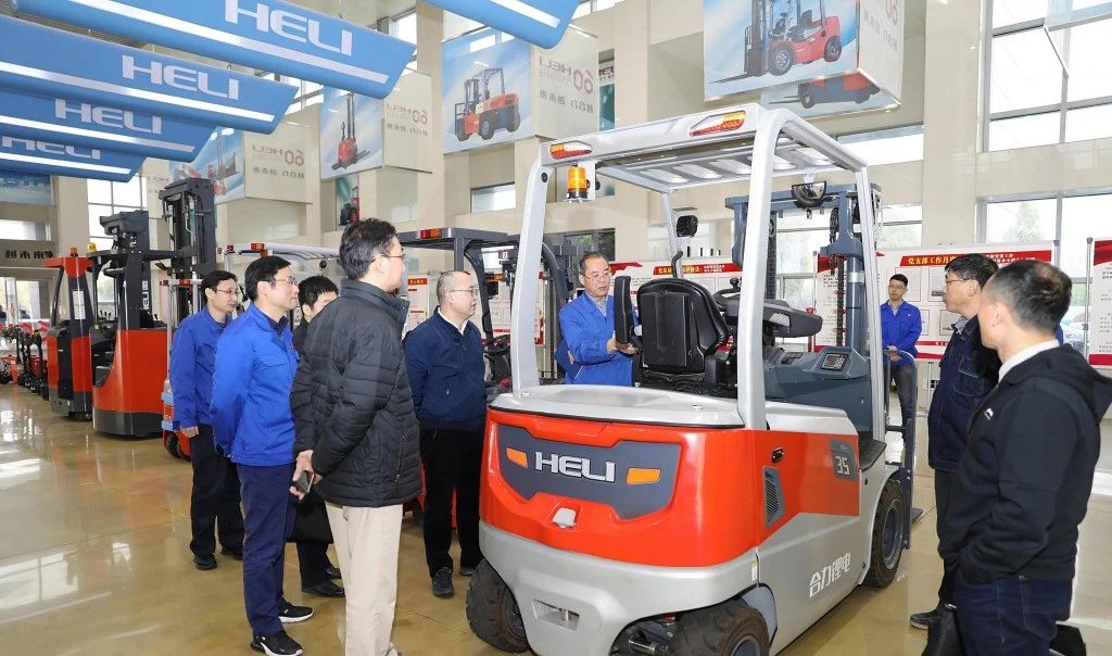 楊澤世一行先后前往合力展廳、橋箱事業(yè)部和電動分公司實地觀摩、了解合力黨建成果及生產(chǎn)經(jīng)營特色。座談會上,楊澤世充分肯定了合力通過黨建領(lǐng)航促進企業(yè)實現(xiàn)高質(zhì)量發(fā)展的鮮明特色,并認真聽取了合力相關(guān)部門對工業(yè)車輛改造資質(zhì)、車輛安全監(jiān)管、車輛上牌和加裝安全識別系統(tǒng)等現(xiàn)狀分析及建議,表示后續(xù)會持續(xù)做好有關(guān)問題的調(diào)研,進一步完善相關(guān)制度和標準,為企業(yè)創(chuàng)新提供支持;同時希望合力能借助長三角一體化發(fā)展的契機,多開展一些合作交流,促進技能人才的培養(yǎng)。